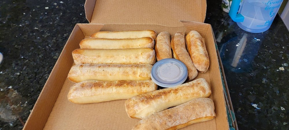 Fresh dough baked to a golden brown then topped with our Special Garlic sauce and Parmesan cheese. Served with original pizza sauce for dipping.